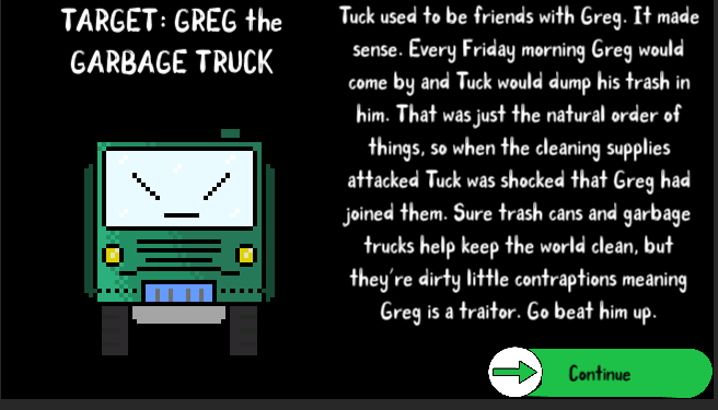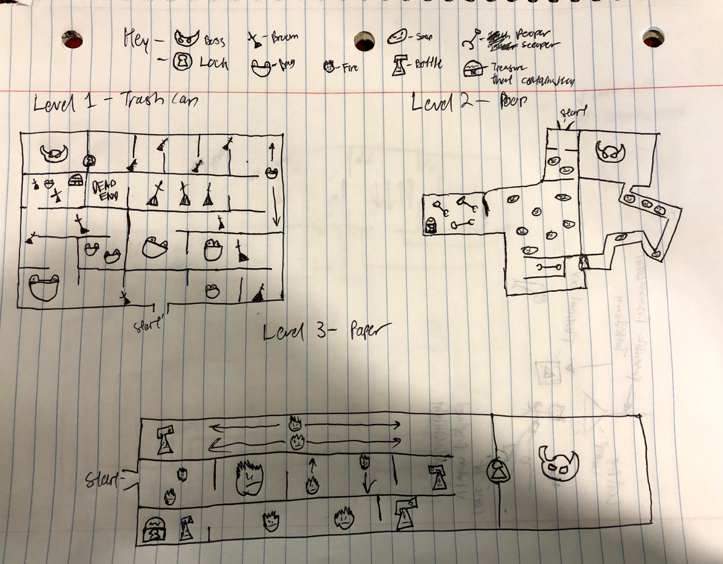 TRASH ONLY takes place in a universe where sentient cleaning supplies rule the world. Of course in a universe where there are sentient cleaning supplies there are is also sentient garbage that wants nothing more than to make everything filthy. Control Tuck the Trash Can, Joey Junk, and Harold as you fight off a world of Soap Bars and Trash Collectors.